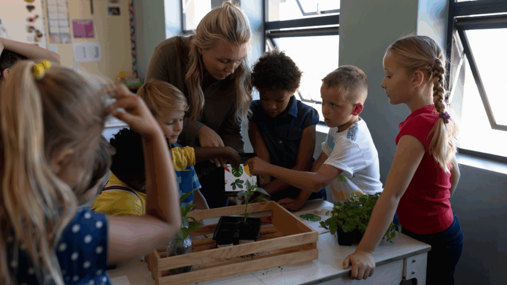 Planting seeds, caring for animals, restoring a playground corner, or telling stories about collective repair can be emotionally powerful acts, not because they solve climate change, but because they help children develop a relationship with nature. Therefore, children experience themselves as connected and capable, rather than helpless.